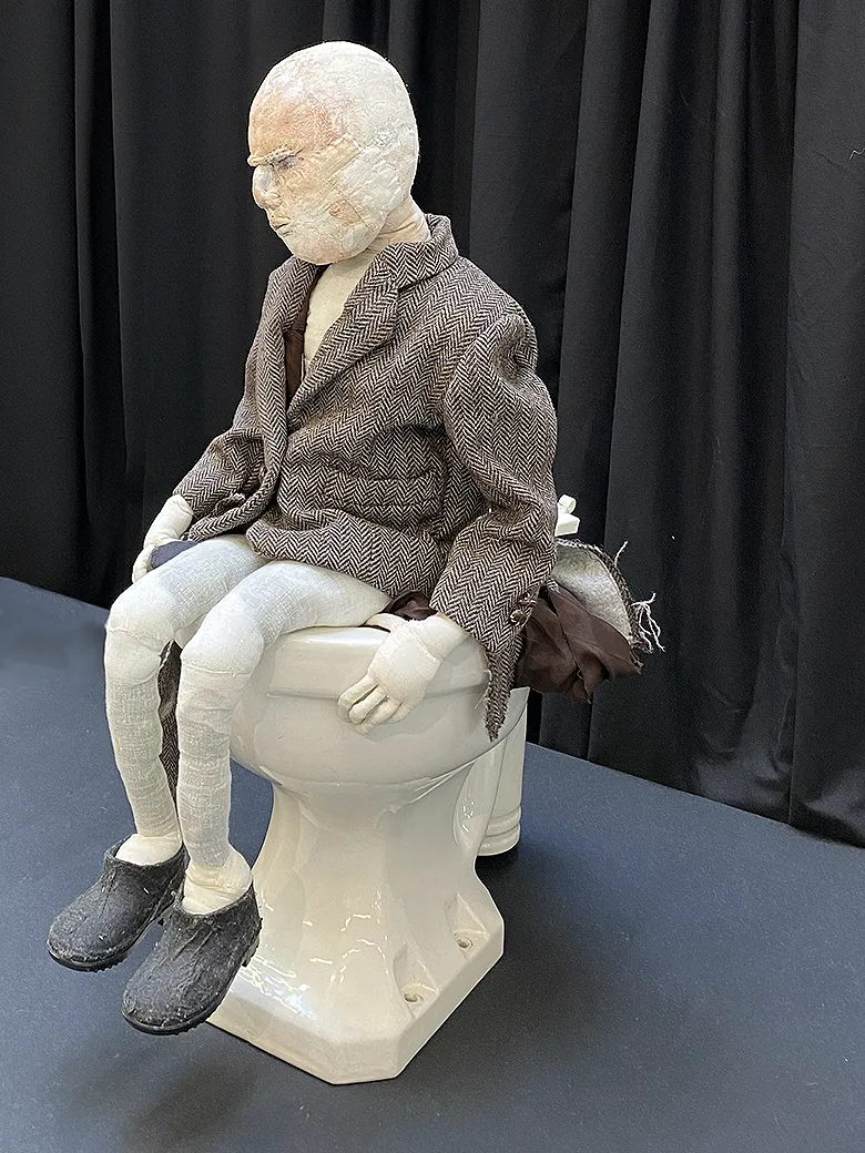 In this work I have made 'smaller' tweed jackets worn by my ex-husband and previous lovers. The intense personal connection with the owners of the jackets is combined with a distorted human figure within an enigmatic domestic surrounding.